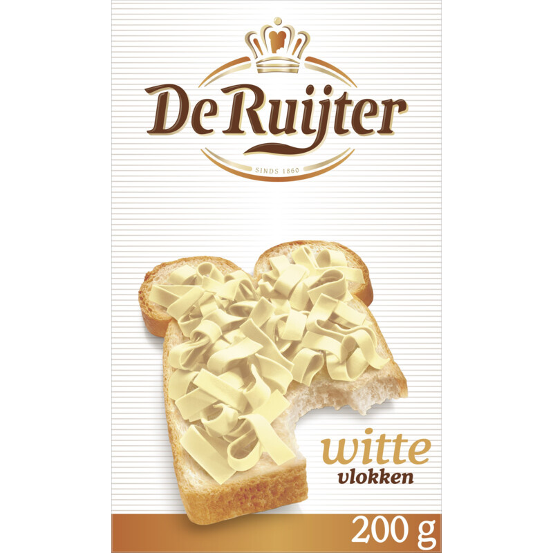 Heerlijke vlokken met een witte chcolade smaak om wat-dan-ook lekker mee te versieren. Inhoud 200 gram.