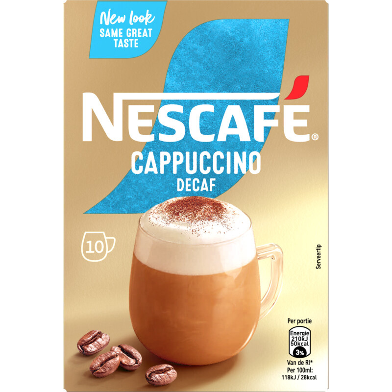 Nescafe gold cappuccino decafe oploskoffie is een heerlijke, romige, cafeinevrije koffie met een volle melkschuimlaag. Inhoud 10 kopjes.